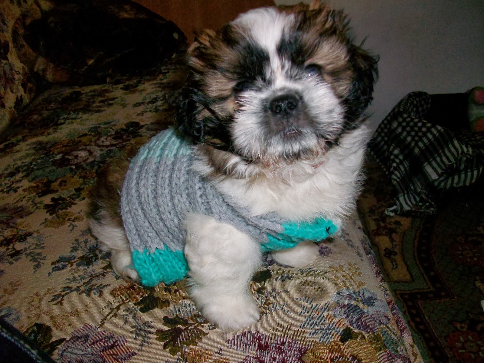 Ce crede-ţi că a făcut? A dat fuga la o tonetă şi mi-a luat un fular tricotat care mai apoi l-a transformat într-o hainuță. Nu pot zice că-mi sta rău pentru că eu oricum sunt chipeş. Dacă e pe mine, nu are cum să nu fie superb: X (ca mine: ->)